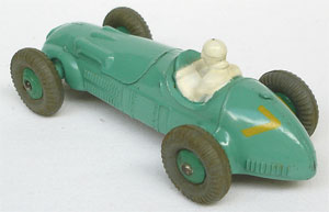 Issued between 1954-60, this classic Dinky racer has an original pale green finish, white driver, racing number 7, matching cast wheels, untarnished baseplate.