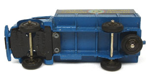 Early issue example (1949-50) in all original condition with a bright mid blue finish, darker blue tinplate tilt with perfect-very close to perfect attractive detailed transfers “Societe National Des Chemins De Fer Francais” on both sides, black ridged wheels, ‘M’ embossed tyres, bright button-ended axles and importantly a cast-in tow hook.