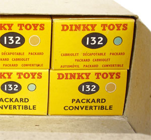 What a find! This card outer trade box from Dinky contains the full complement of six Packard Convertible models as sent from the factory in 1955. All contents are authentic – this is not a later made-up selection of models.