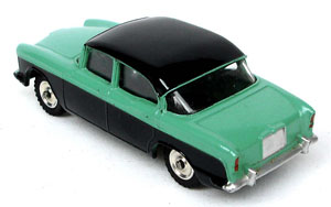 This classic Dinky car was made during 1959-60 and has a bright two tone green and black finish, shiny shaped spun hubs with suspension. In all original condition, this is the version with a silver rear number plate and front number plate casting.