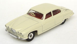 Surely one of the rarest Dinky Jaguar models, this South African issue Dinky has a pleasing ivory finish, silver trim, bright red interior, suspension on spun wheels.
