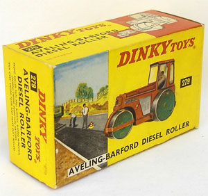 Dinky 279 Aveling-Barford Diesel Roller. Mint/boxed. Orange with green rollers. With internal packing card.