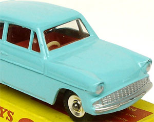 Dinky 155 Ford Anglia. Very near mint/boxed. Turquoise with bright red interior.