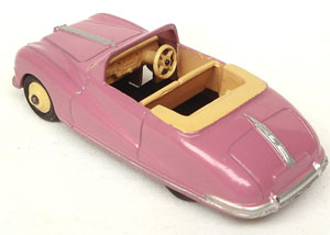 Issued between 1951-53, in various colours, this attractive example finished in pink and cream is in all original condition. Just a few minor marks away from mint! Complete with cream steering wheel, four smooth running original tyres, original silver detailing and a bright railed baseplate.