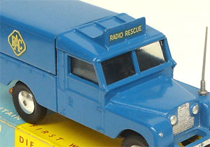 Looking unused, this is a fine example of the first issue RAC Radio Rescue Land Rover finished in mid-blue, with smooth wheels. Roof sign has complete ‘RADIO RESCUE’ lettering, complete RAC logo8 on both sides of the tin tilt. Straight original *aerial. Very nice indeed!