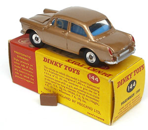 Dinky 144 Volkswagen 1500. Very near mint (one dot!)/boxed. Scarce bronze issue with suitcase. From the 1200 model Italian collection!