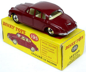 Dinky 195 Jaguar 3.4 Saloon. Mint (one dot!)/boxed. Maroon issue. From the 1200 model Italian collection!