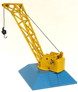 Issued between 1954-59. Often found in quite chipped condition due to the irresistable play value (hoisting, slewing & jib raising!). This example has fared better than most with only the occasional minor mark to the vibrant blue and yellow finish. Our guess is that this crane has spent the majority of the past 55 or so years tucked away firmly in its packing piece and largely forgotten!