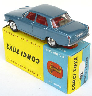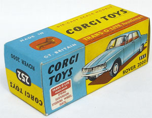 Corgi 252 Rover 2000. Light steel blue issue. Very, very near mint (one mark)/boxed. Rare plain box with 252 ROVER 2000 stamped ends! From a very fine private collection in Cheshire.