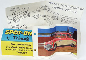 Spot-On 100/SL Ford Zodiac with *WORKING* head and rear lights. Very near mint/boxed. Yellow & white. With 3 leaflets! From a large Spot-On collection.