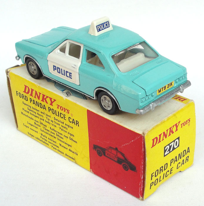 Dinky 270 Ford Escort Panda Police Car. Very, very near mint/box wear but complete. Early issue. From the 1200 model Italian collection.