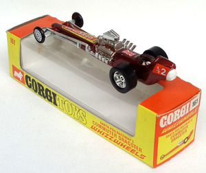 Corgi 161 Santa Pod Raceway's Commuter Dragster. Near mint (but age-affected labels) /boxed. From the 1200 model Italian collection.