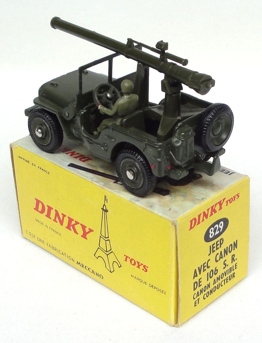 French Dinky 829 Jeep With Gun. Very near mint/boxed. From the 1200 model Italian collection.