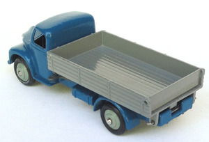This scarce version has a distinctive French blue cab and chassis, deep grey back and pale grey wheels. Smooth tyres. A fine lustre to the paint finish, a shiny baseplate and metal parts generally, including the axle ends.