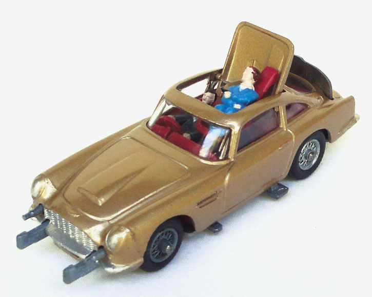 In authentic condition throughout with a lustrous gold finish, this James Bond Aston Martin model is in close to mint condition. The car is fully functioning, complete with both figures. A most attractive and eye-catching example – not even a chip in the centre of the roof!