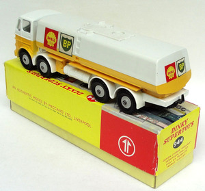 Dinky 944 Shell-B.P. Fuel Tanker. Very, very near mint/boxed. White chassis version. Old shop stock quality!