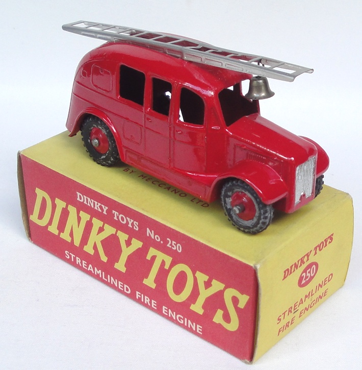 Dinky 250 Streamlined Fire Engine. Near mint plus/boxed. Treaded tyre version. From the Italian collection.