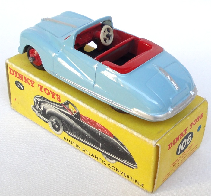 Dinky 106 Austin Atlantic Convertible. Blue version with red wheels & interior. Very, very near mint/boxed. From an impeccable collection in The Netherlands.