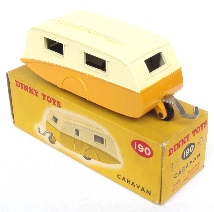Dinky 190 Caravan. Yellow & Cream version. Very, very near mint/boxed. From the Italian collection.