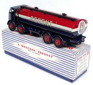 This shining bright tanker was issued during 1955 (Dinky stamp inside the box lid). Complete ‘REGENT’ lettering on both sides and no dents or crazing to the tank.