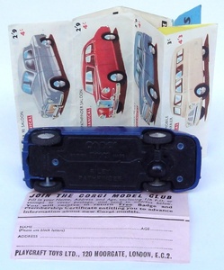 Corgi 205M Riley Pathfinder Saloon. Scarce dark blue mechanical issue. Very near mint/boxed. With promotional booklet and rare PINK CORGI CLUB MEMBERSHIP FORM. From a very fine private Cheshire collection.