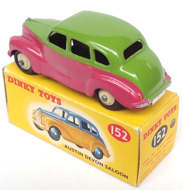 Dinky 152 Austin Devon Saloon. Cerise and green. Very near mint/boxed (repair). Another rare piece from the Berkshire collection.