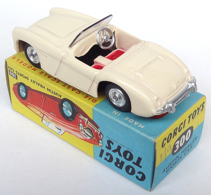 Corgi 300 Austin Healey Sports Car. Very, very near mint/boxed. Scarce cream issue with shaped spun wheels. Outstanding example from The Berkshire Collection.