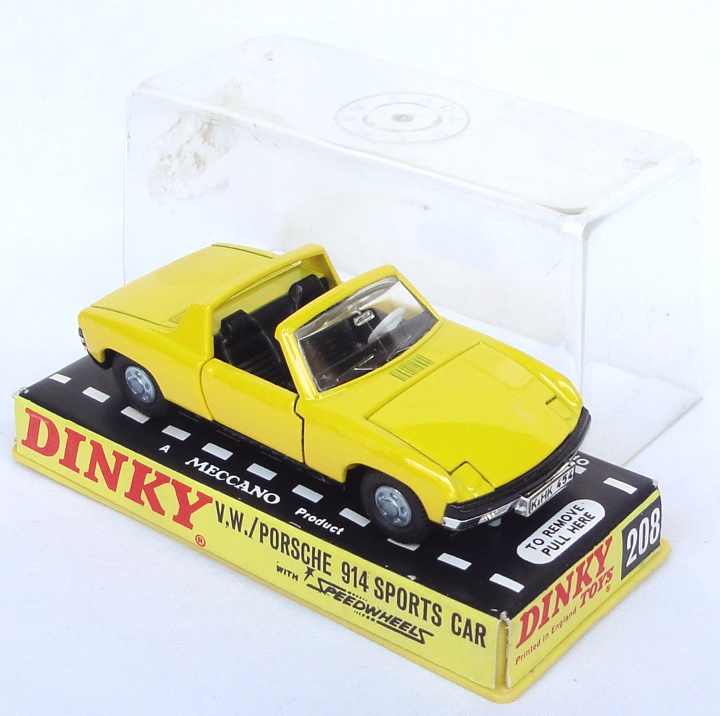 Dinky 208 VW Porsche 914. 1st issue in yellow, cast wheels. Mint/boxed (slight wear) From The Berkshire Collection.