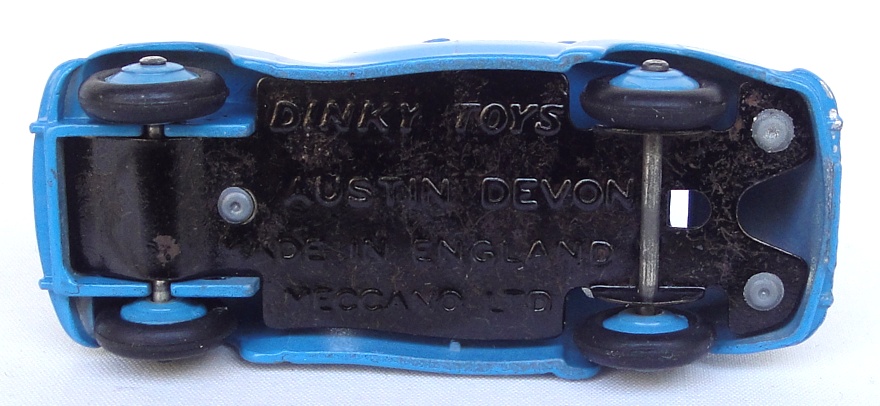 An especially difficult find this Austin Devon Saloon model has a sky blue finish with matching wheels.