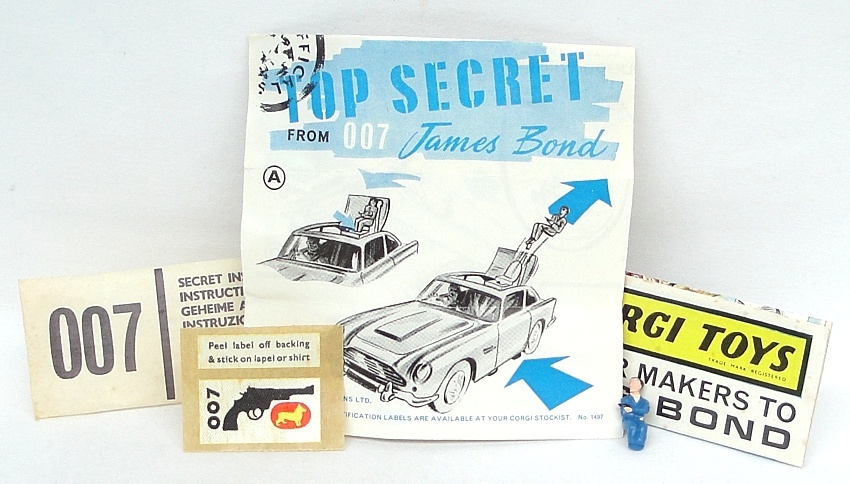 The Instruction Packet has been carefully opened and inside there are the all-important Secret Instructions which detail the retractable machine guns, opening roof and ejector seat, rear bullet screen and telescopic over-riders.