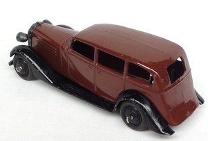 Issued between 1946-47, this car has a deep rich brown finish with a black chassis. Intact and complete radiator, headlight and bumper assembly. Distinctive ‘shield’ radiator. Black ridged hubs. Plain closed chassis. In all original condition with a pleasing lustre. Smooth running tyres.