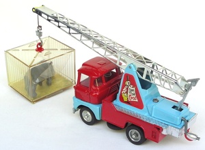 Perfect “Come to the Circus” label correctly on one side only.Couple of tiny factory assembly marks on the blue paint near the jib fixing and a raised piece of casting on the silver bed. Seems harsh to downgrade from mint for that.