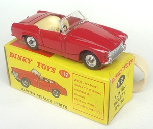 Dinky 110 Aston Martin DB3 Sports. Very, very near mint/boxed. Deep green issue, red diecast wheels.